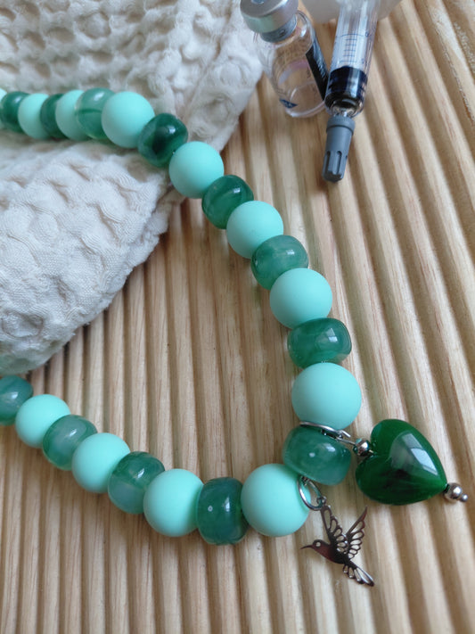 Le colibri, petit oiseau résiliant et courageux incarne parfaitement le chemin de la Procréation médicalement assistée. Porter ce collier, c'est afficher un message de persévérance et d'espoir, tout en gardant près de son cœur la promesse d'un futur bonheur.
