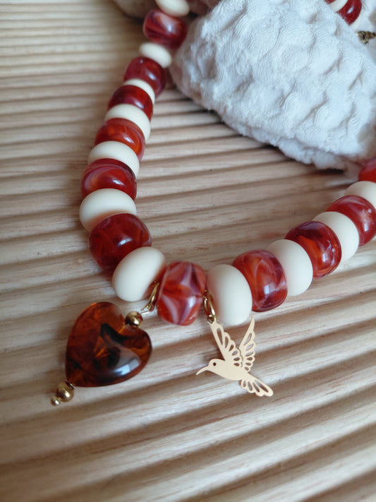 Collier Pop Love Rouge Marbré