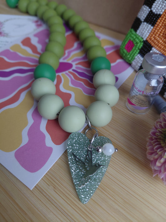 Collier Pop Love vert et sa pochette